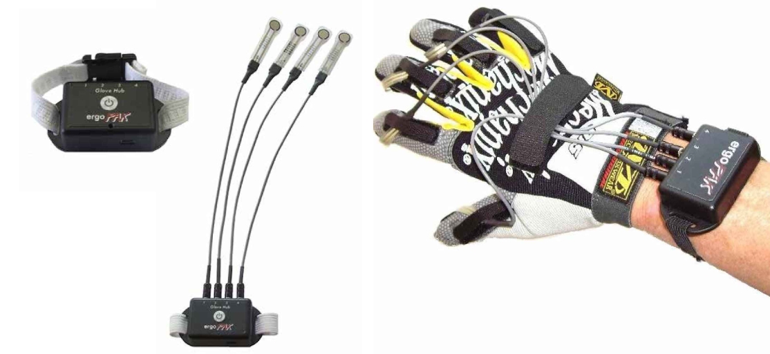 1. The ergoGLOVE with Force Sensing Resistors is an ergonomic FSR sensor system and can be used to measure localized force between the body, fingers/hand and external surfaces and tools, or between two surfaces.