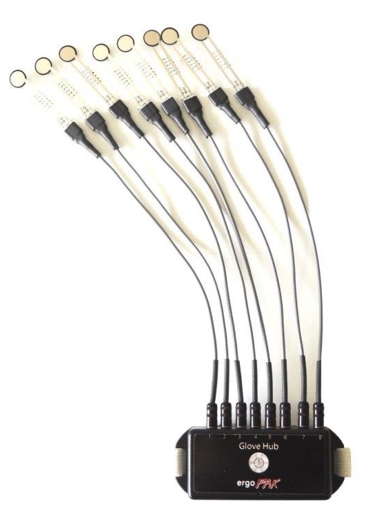 ergoGLOVE wireless hub you can connect 1-8 FSR sensors to measure force !