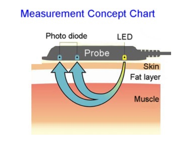 - Therefore, as a result of eliminating the influence of the subcutaneous fat layer as much as possible, the measurement error is within 2 to 3%, close to the absolute value as much as possible compared to the conventional method.
