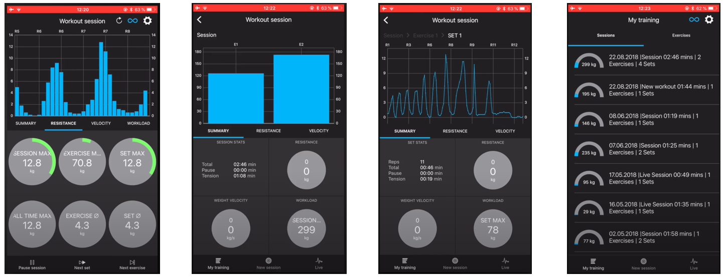 - Compare the peak resistance and weight velocity of your exercises and your total workload across the whole training session.