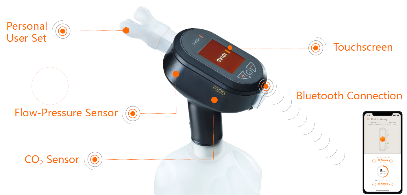 [호흡근육 강화훈련] 스마트 호흡근육 강화 훈련 시스템, 호흡근 훈련기, IDIAG P100
