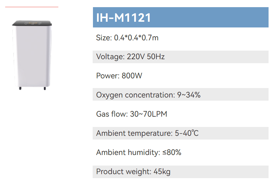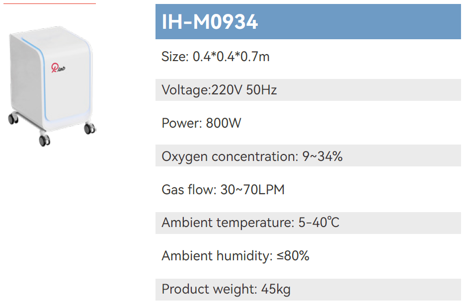 The product monitors and judges the user's current physical state in real time through blood oxygen saturation sensors, heart rate sensors, etc., and provides users with mixed gases with different oxygen concentrations (9-34%) intermittently and accurately through intelligent algorithms, so as to achieve physical function improvement, fat burning and shaping in a safer and more comfortable way.