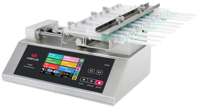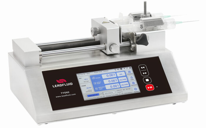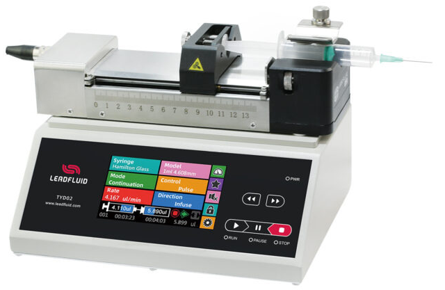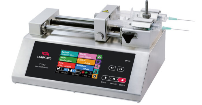 TYD01-02 (New)Laboratory Syringe Pump TYD01-02 laboratory syringe pump is a high-precision and multifunctional desktop syringe pump designed specifically for laboratory applications. Its unique design and functional features make it an good choice for various experimental environments. Adopts integrated table model design, 5-inch HD LCD touch screen display and operation, can assembly 1 plastic syringe or gas tight syringe, size range of syringe 10μL~60mL,flow range 0.184nL/min~83.318mL/min. Use excellent control system and precision mechanical structure, linear travel accuracy<± 0.35%, multiple working modes are available,powerful function. It is very suitable for high precision micro-transmission of various fluids in scientific research and experiment. Flow: 0.184nL/min-83.318mL/min Max: 2 Channels |