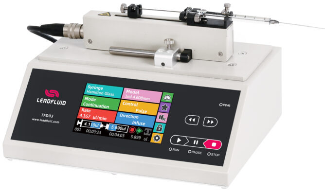 TFD01-01(New) Laboratory Syringe Pump The TFD01-01 syringe pump is a single-channel split style micro syringe pump that combines aesthetics, intelligence, precision, and reliability. It is an ideal choice for laboratories requiring high-precision, pulse-free transmission of microflow volumes. Flow: 0.058nL/min-1.587mL/min Max: 1 Channel |