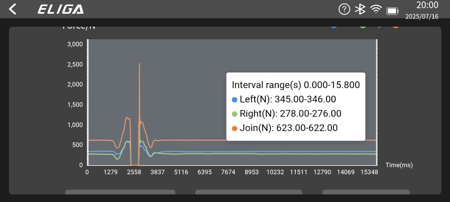 1. Draw the left, right and resultant force curves in real time, and automatically calibrate the core point of the action;